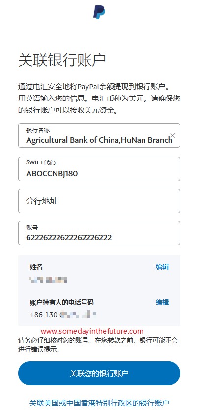 在注册Paypal绑定银行卡时,分行地址应该怎么填写。 2023-03-02添乐 添乐 管理员 关注 224文章 0粉丝 默认分类评论2,914 之前填写的是中文银行名称,再填写分行地址时,老是提示出错! 于是尝试用英文填写银行名称,表示OK! 地址也用上了英文填写,最后再填写银行卡号,即可绑定成功。 至于提现,还没有尝试过哦! 点赞 登录收藏 https://www.chaolen.com/499.html 复制链接 复制链接