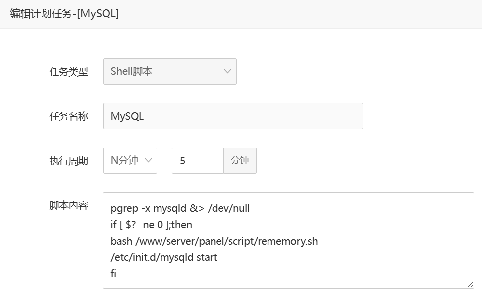 Linux服务器的Mysql进程经常停止运行,设置监控脚本自动执行检查 2023-11-30添乐 添乐 管理员 关注 224文章 0粉丝 系统应用评论886 前端时间服务器的Mysql服务经常自动停止,造成了网站不可访问。 现在只能临时加一条运行脚本来自启动Mysql。 运用的是Linux宝塔面板,在计划任务栏目里新增一条运行脚本,让其自动检查并启动Mysql服务。 代码如下: pgrep -x mysqld &> /dev/null if [ $? -ne 0 ];then bash /www/server/panel/script/rememory.sh /etc/init.d/mysqld start fi 这只是临时的解决方法 点赞 登录收藏 https://www.chaolen.com/616.html 复制链接 复制链接